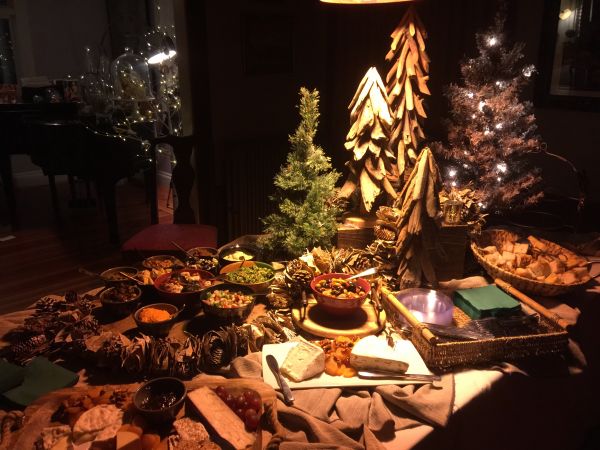 Hummus, tabouleh, etch, muhammara, feta spread, baked eggplant, falafel, dolma, tapenade, lentil pilaf